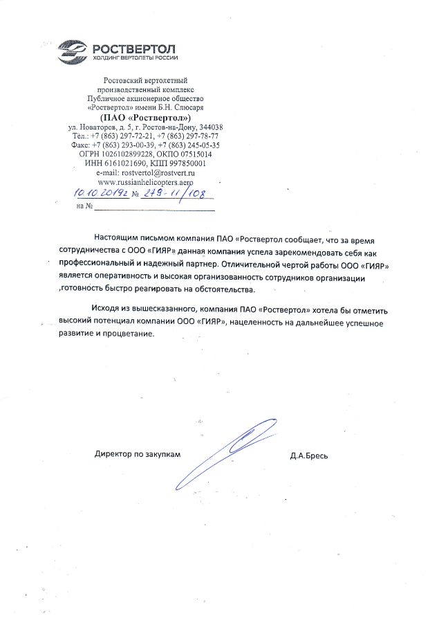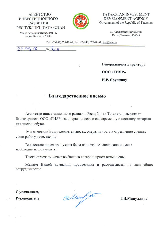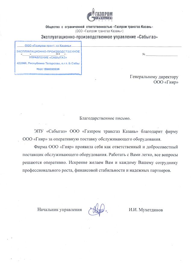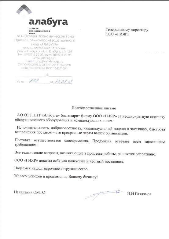 Благодарственные письма: