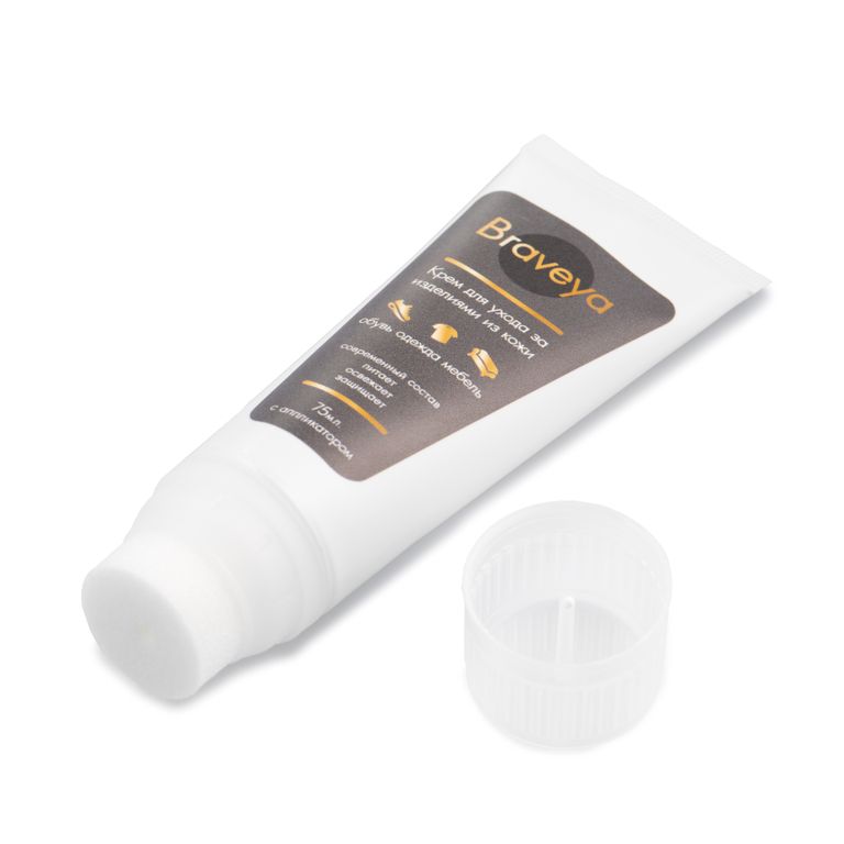 Крем поставляется с губкой аппликатором и дополнительно укомплектован салфеткой для очистки и полировки изделий. Данный комплект удобен для полноценного ухода за обувью и другими изделиями из кожи.
