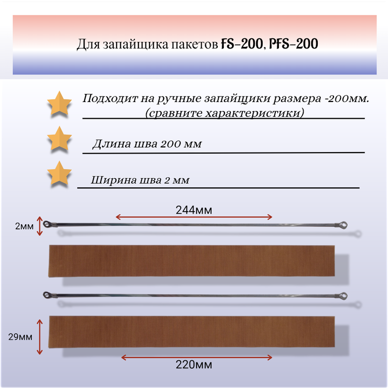 ЗИП предназначен на запаиватели пакетов размера 200 (FS-200 ABS, FS-200 Iron, FS-200C)