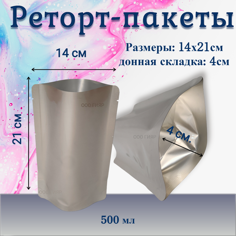 Реторт пакет создан для хранения и консервирования продуктов без применения консервантов, состоит из многослойного материала, обладает повышенными защитными свойствами, имеет донную складку, продукты возможно стерилизовать прямо в упаковке при температуре более 100С.