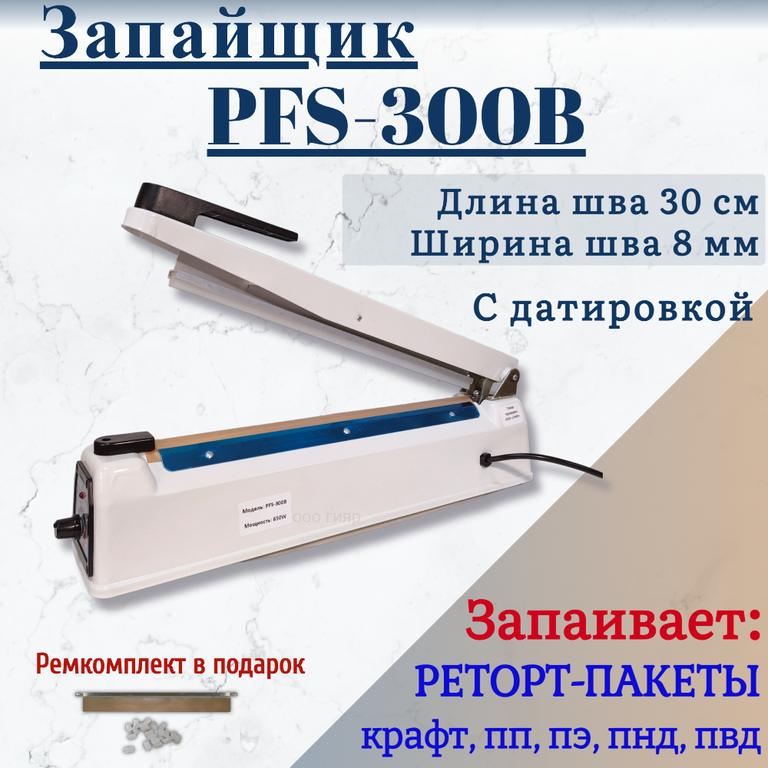 PFS-300B – это уникальный импульсный запайщик с широким швом 8 мм, для запайки разнообразных термосвариваемых материалов.